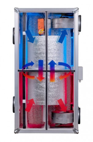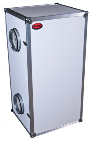 Najważniejszą częścią centrali jest wykonany z aluminium wymiennik spiralny - przeciwprądowy. Powstał na podstawie naszego patentu w oparciu o najnowsze technologie dzięki czemu jest wstanie odzyskać do 96% ciepła (minimalna wartość odzysku 80%). Tak wydajny odzysk udało się uzyskać dzięki bardzo dużej powierzchni czynnej wymiany ciepła (np. dla modelu NIKOL 320 ponad 40m2 folii aluminiowej) co w przypadku zwykłych wymienników krzyżowych może wynosić zaledwie kilka metrów kwadratowych różnego typu materiału. Specjalna konstrukcja pozwala osiągnąć odzysk ciepła nieosiągalny dla innych typów wymienników i zapewnia mu sprawne funkcjonowanie nawet w największe mrozy. W rekuperatorze NIKOL zrezygnowano z energochłonnych nagrzewnic wstępnych elektrycznych niejednokrotnie wymaganych w centralach innego typu. Produkowane przez nas centrale działają sprawnie w najzimniejszych rejonach polski. Rekuperatory NIKOL zostały docenione na Podlasiu, w pozostałej części kraju, jak i w Europie.