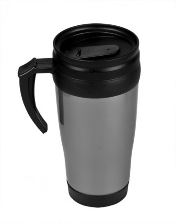 Kubek termiczny, plastikowy, z pokrywką, plastikowy środek.
