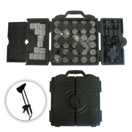 W zestawie: panele z wydrukiem, konektory, nóżki, oświetlenie halogenowe (2 szt.). Walizeczka transportowa.