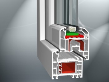 System 5-cio lub 6-cio (opcjonalnie) komorowy o głębokości zabudowy 70 mm ( szerokość profilu ), z uszczelnieniem zewnętrznym, okucia Roto NT.