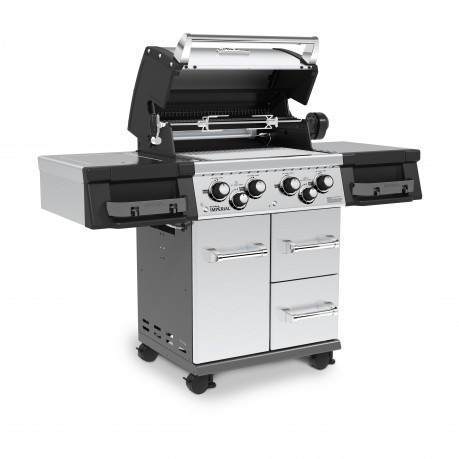 Stalowy korpus grilla Imperial S 490 osadzony jest na stalowej podstawie uzbrojonej w 4 koła z blokadami ruchu. Wyposażony jest w dwie duże szuflady do przechowywania akcesoriów oraz szafkę na 11 kg. butlę z gazem. Na wykonanej ze stali nierdzewnej obudowie umieszczono piekarnik, którego pokrywę wykonano z tego samego materiału, a umieszczone w nim termometr umożliwiający kontrolę temperatury grillowanych potraw.