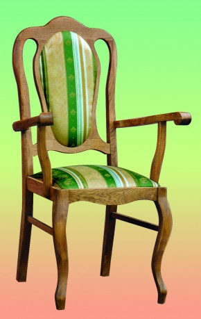Krzesło dębowe, występuje również w wersji z podłokietnikami, materiał obiciowy do wyboru z naszego wzornika lub dostarczony przez klienta.Wybarwienie wg kolorów wzornika oraz wg indywidualnych życzeń klienta-dobieramy kolor do posiadanych już przez Państwa mebli.