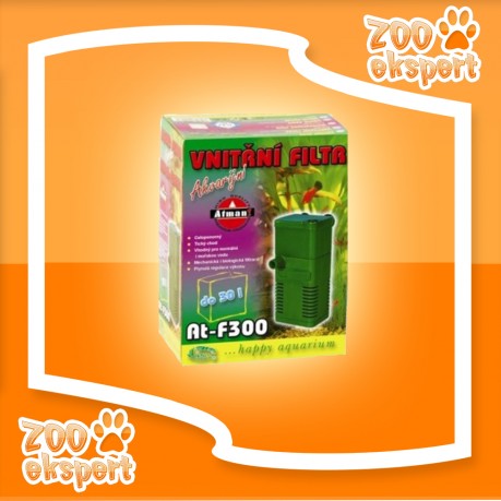 Filtr wewnętrzny Atman At-f300 o mocy 2,5W , maksymalnej wydajności 200l/h i płynnej regulacji wydajności. Filtr przeznaczony do oczyszczania i napowietrzania wody w akwarium. Stosowany w akwariach do 30l. Wykonuje mechaniczną i biologiczną filtrację zarówno w akwariach normalnych , jak i morskich, jest cało zatapialny. Charakteryzuje się cichą pracą.