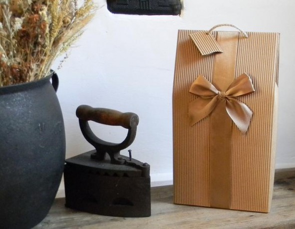 Torba z tektury fala E z kokardą, na dwie butelki wina.
