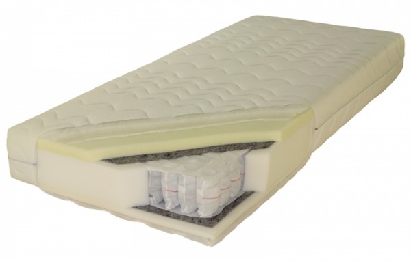 pokrowiec: wykonany jest z materiału obiciowego, obustronnie pikowanego antyalergiczną owatą 200 g/m2. Zastosowanie zamka rozdzielczego umożliwia zdjęcie pokrowca i wypranie go w temp. do 60°C, co stanowi gwarancję zachowania optymalnej higieny spania.