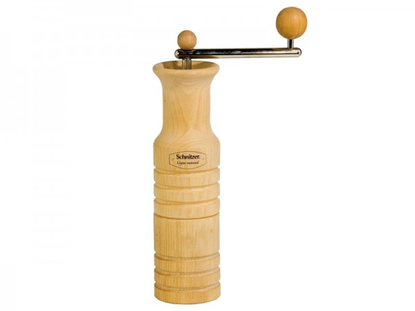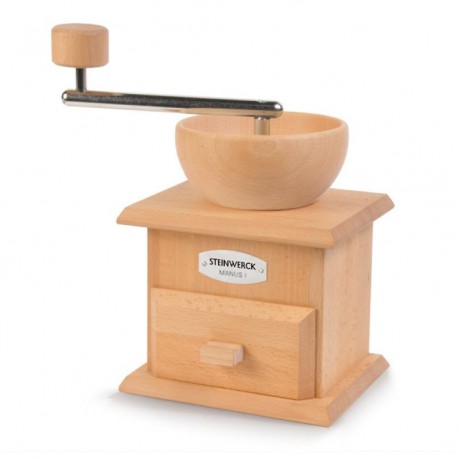 Żarnowy młynek ręczny do mielenia kawy. Wykonany z drewna bukowego nasączonego olejem lnianym. Posiada system mielący z korundu ceramicznie wiązanego. Posiada funkcję regulacji grubości przemiału.