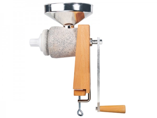 Młynek ręczny Country umożliwia zmielenie w krótkim czasie dużej ilości mąki, wystarczającej do upieczenia chleba. Posiada możliwość regulacji grubości przemiału. Wyposażony w kamienie mielące z korundu ceramicznie wiązanego. Nadaje się również do mielenia kukurydzy.