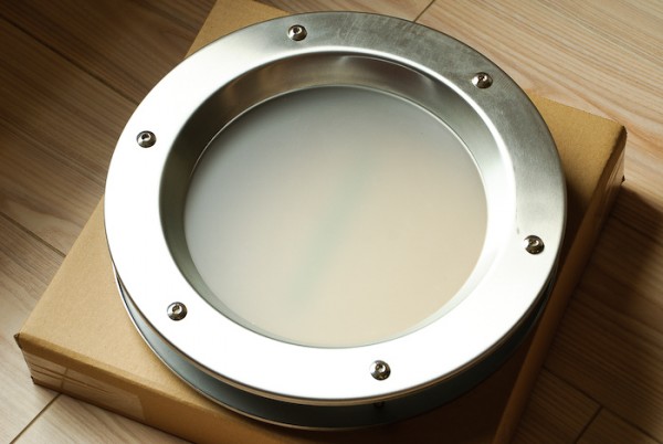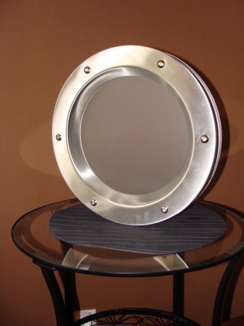 BULAJ TŁOCZONY niesłychanie efektowne okienko o średnicy 350 mm do zamontowania w drzwiach wewnętrznych. Pierścienie wykonane są ze szlifowanej blachy nierdzewnej, natomiast szyba standardowo wykonana jest z matowego szkła typu decormat 4mm.