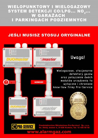 WIELOPUNKTOWY I WIELOGAZOWY SYSTEM DETEKCJI CO/LPG...NO2... W GARAŻACH I PARKINGACH PODZIEMNYCH.