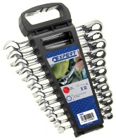 Zestaw 12 kluczy oczkowo-płaskich z grzechotką, na plastikowym stojaku
