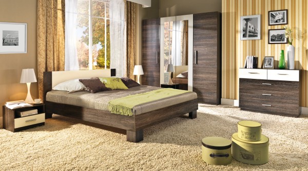 Elementy sypialni ALLESIA - MONTAŻ GRATIS. Korpusy wykonane są z płyty w kolorze arusha wenge a fronty są w kolorze arusha wenge + biały krem. Każdy z elementów sypialni można kupić oddzielnie. Można zamówić łoże z materacem szerokości 160 lub 180 cm lub łoże tapicerowane z materacem szerokości 140, 160 lub 180 cm. Posiadamy duży wybór materacy piankowe, bonelowe, kieszeniowe, w których wkład sprężynowy może być obłożony matą kokosową pokrytą naturalnym lateksem, pianką poliuretanową, owczą wełną czy odpornym na wilgoć włosiem końskim. Do łoża można dobrać szafki nocne, komodę lub szafę z lustrem. Można wybierać Kolor tapicerki w łożach tapicerowanych.