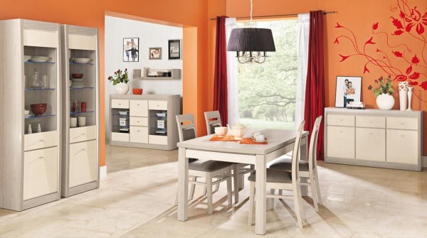 Kolor frontów: jaśmin połysk. Meble wykonano z płyty wiórowej laminowanej (gr. 18 mm i 22 mm), krawędzie oklejono obrzeżem PCV, górne wieńce wykończone zostały listwą MDF, poszczególne elementy połączono kołkami i złączami mimośrodowymi. Laminowana powierzchnia brył jest odporna na temperaturę i na zarysowania. Duży wybór elementów pozwalający stworzyć wiele ciekawych aranżacji m.in. witryny, szafa, komody, stół, ława, szafki wiszące, szafki, regały, półki itd.