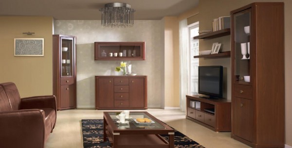 Przykładowe zestawienie elementów - MONTAŻ GRATIS. Kolor korpusu i frontów kasztan corsico, płyta wiórowa laminowana (gr. 18 mm i 22 mm) wykończona częściowo okleiną PCV, ścianki tylne z płyty HDF (gr. 3 mm). Dużo elementów w wielu wymiarach m.in. komody, szafy, witryny, łóżka, półki, łoża tapicerowane w różnych obiciach.