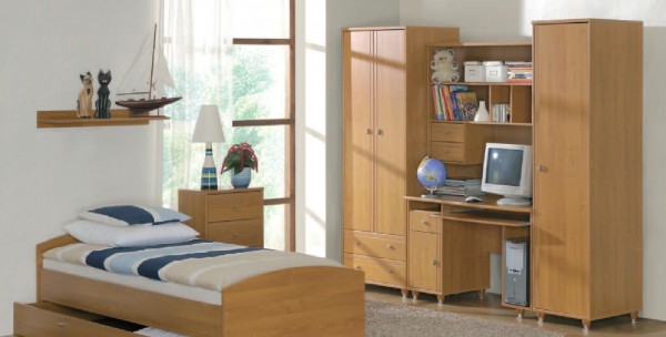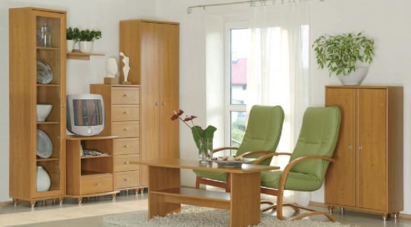 Przykładowe zestawienie mebli - MONTAŻ GRATIS. Kolor olcha miodowa, nóżki z regulacją wysokości,prowadnice metalowe kulkowe, dużo elementów umożliwiających wiele aranżacji m.in. szafy, komody, regały, szafki, biurka, witryny, półki, łóżka itd.