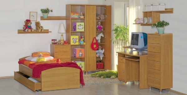 Przykładowe zestawienie mebli - MONTAŻ GRATIS. Kolor olcha miodowa, nóżki z regulacją wysokości, zawiasy puszkowe z możliwością regulacji, dużo elementów umożliwiających wiele aranżacji m.in. szafy, komody, regały, szafki, biurka, witryny, półki, łóżka itd.