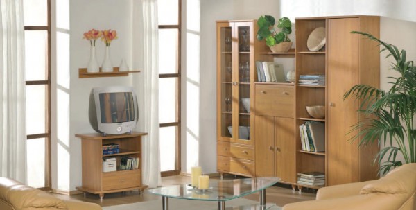 Przykładowe zestawienie mebli - MONTAŻ GRATIS. Kolor olcha miodowa, nóżki z regulacją wysokości, dużo elementów umozliwiających wiele aranżacji m.in. szafy, komody, regały, szafki, biurka, witryny, półki, łóżka itd.