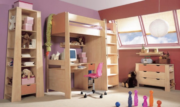 Przkładowy zestaw mebli - MONTAŻ GRATIS. Kolor korpusu grusza dzika, kolor frontu grusza dzika+terra łosoś lub terra niebieska. Oryginalny system mebli dla dzieci, wiele elementów ( półki na ściankach bocznych regałów i szaf) m.in. łózko piętrowe z biurkiem i szafą, regały, komody, półki itd.