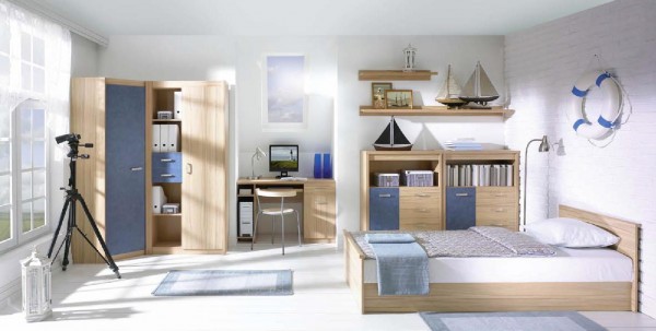 Przykładowy zestaw mebli - MONTAŻ GRATIS. Kolor korpusu buk rdzeniowy, kolor frontu buk rdzeniowy, elia zielony lub elia niebieska, płyta wiórowa melaminowana (gr. 18 mm), prowadnice metalowe rolkowe. Wiele elementów pozwalających stworzyć ciekawe aranżacje w pokojach młodzieżowych m.in. szafy, komody, regały, biurka, półki.