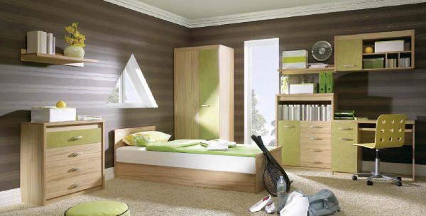 Przykładowy zestaw mebli - Montaż gratis. Kolor korpusu buk rdzeniowy, kolor frontu buk rdzeniowy, elia zielony lub elia niebieska. Wiele elementów pozwalających stworzyć ciekawe aranżacje w pokojach młodzieżowych m.in. szafy, komody, regały, biurka, półki.