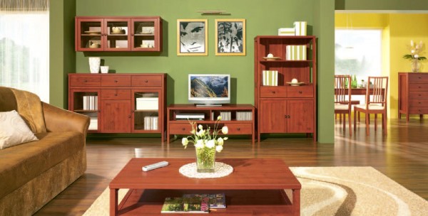 Przykładowe zestawienie elementów - MONTAŻ GRATIS. Kolor korpusu i frontu wiśnia antyczna, płyta wiórowa melaminowana (gr. 18 mm i 22 mm), krawędzie oklejone obrzeżem PCV, ścianki tylne z płyty HDF (gr. 3 mm). Dużo modułów w wielu wymiarach m.in. komody, regały, witryny, łóżka, lustra, szafki, ławy.