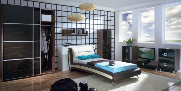 Przykładowe zestawienie elementów wchodzących w skład sypialni SIMONA - MONTAŻ GRATIS. Korpusy kolor noce barone, kolor frontu to połysk zebrawood lub teak. Łóżka dostosowane są do materacy o szerokościach od 90 do 180 cm. Szafy w szerokościach: 160, 200 i 240 cm. Meble zostały wykonane z wysokiej jakości płyty laminowanej. Jest ona odporna na zarysowania, działanie czynników zewnętrznych i zabrudzenia. Kompletując sypialne można wybrać szafę, komodę, szafki nocne oraz łoże tapicerowane.