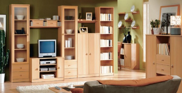 Przykładowe zestwienie mebli - MONTAŻ GRATIS. Kolor buk sanemberg, wiele elementów umożliwiających dużo aranżacji wnętrz m.in. regały, dużo biurek, szafy, półki, witryny, szafki itd.