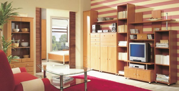 Przykładowy zestaw elementów - MONTAŻ GRATIS. Kolor korpusu i frontu olcha górska, fronty wykonane z MDF-u pokrytego wysokogatunkową folią PVC, płyta wiórowa laminowana (gr. 18 mm i 22 mm), krawędzie wykończone częściowo techniką soft. Wyjątkowy system w którym sami możemy określić w którym miejscu w regale mają być zamocowane szuflady czy drzwiczki. Daje to możliwość tworzenia wręcz nieograniczonej ilości modułów a tym samym ciekawych aranżacji. Układy mebli można tworzyć z dużej ilości elementów m.in. regałów, komód, szaf, półek, witryn, biurek, stolików RTV, łóżek, narożników zewnętrznych i wewnętrznych.
