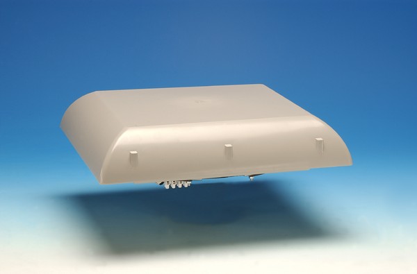 Wymiary wentylatora to 400 x 350 x 102 mm. Zasilanie to 230/50-60 V / Hz. Moc pobierana 70/90 W. Pobór prądu 0,32 / 0,40 A. Wycięcie 180 x 180 mm. Wolny przepływ powietrza 600 / 625 m³/h. Przepływ powietrza z kratką wylotową 430 / 450 m³/h. Poziom hałasu to 64 / 65 db (A).