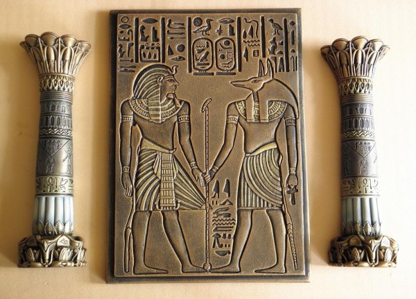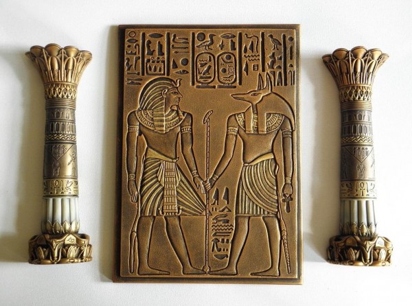 Komplet egipska płaskorzeźba i 2 kolumny egipskie postacie