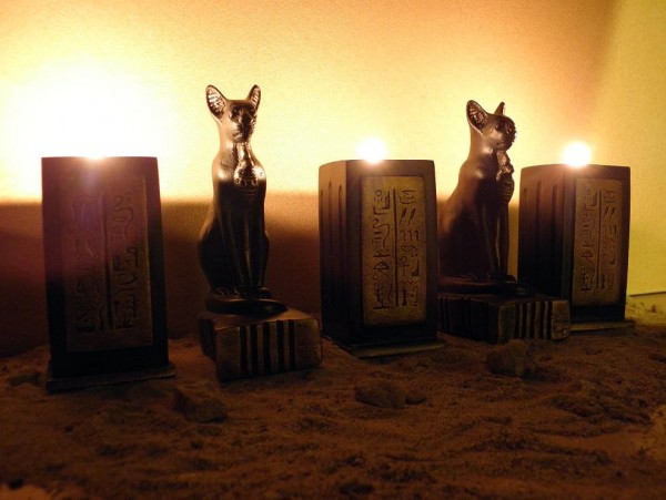 Komplet figurek egipskich bastet świecznik bogini egipska egipt