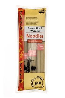 Makaron z ryżu brązowego to idelane rozwiązanie dla osób stosujących dietę bezglutenową i niskobiałkową. W skład wchodzą wodorosty Wakame, znane i często stosowane w kuchni azjatyckiej, bogate w wapń i żelazo, zawierają także witaminy A i C.