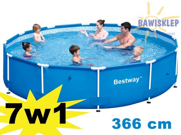 Zestaw 7w1: basen stelażowy + pompa filtrująca + filtr ( wkład filtrujący ) + podłoga do basenu + pokrywa chroniąca przed spadającymi liśćmi oraz słońcem ) + dozownik chemikaliów oraz termometr .