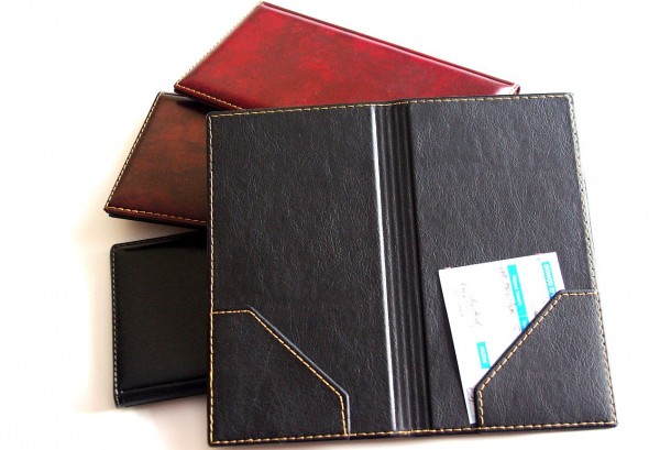 Okładka do płatnika kelnerskiego wykonana jest z wysokiej jakości materiałów. Podklejenie pianką powoduje, że okładka jest miękka i przyjemna w dotyku, a obszycie nicią w kontrastowym kolorze oprócz wzmocnienia dodaje jej subtelnej elegancji. W środku znajdują się dwie kieszenie wykonane z tej samej folii co okładka, również obszyte nicią. Doskonale spełni swoją rolę w eleganckiej restauracji, jak i w niewielkim barze - ładny i trwały. Przewagą folii PCV nad skórą lub wyrobami introligatorskimi jest łatwe utrzymanie obwoluty w czystości - wystarczy umyć wodą. Okładka ma wymiary 255X120 (złożona). Okładki dostępne w kolorach bordo, brąz, czarny oraz zielony. Na zamówienie możemy wykonać okładki w innych kolorach.