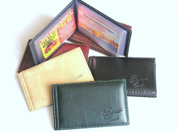 Klaser na wizytówki w kieszonkowym rozmiarze. Wykonywany w różnego rodzaju folii PCV. W środku znajduje się 12 jedno-klatkowych wkładów na 24 wizytówki.