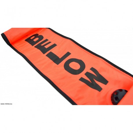 - czarny napis "diver below" (nurek poniżej) plus nadrukowany znak nurkowy,