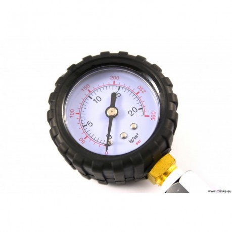 - posiada gumową obudowę, która zabezpiecza manometr przed uszkodzeniami.