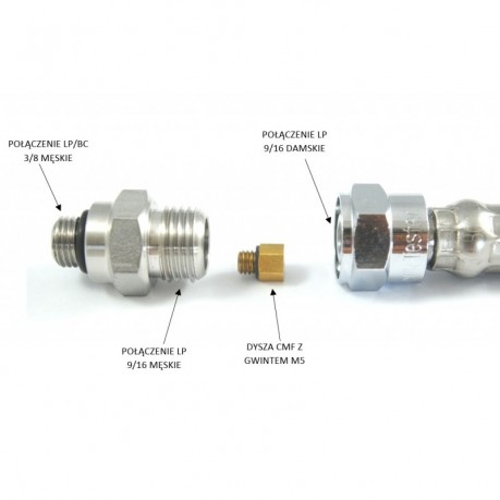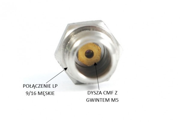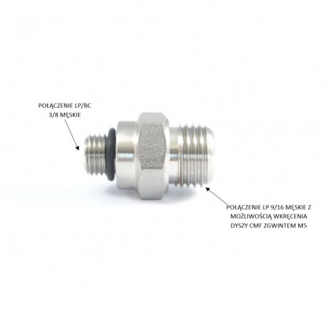 REDUKCJA Z LP/BC 3/8 MĘSKIE NA LP 9/16 MĘSKIE Z MOŻLIWOŚCIĄ WKRĘCENIA DYSZY CMF Z GWINTEM M5
