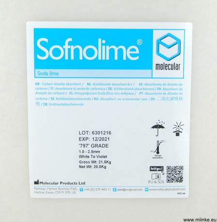 Wapno Sofnolime 797 posiada granulki o średnicy od 1,0 mm do 2,5 mm oraz przekrój w kształcie trójkąta, co w praktyce pozwala na uzyskanie większej wydajności absorpcji CO2.