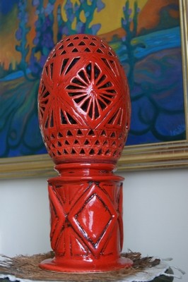 Szkliwiona na czerwono: kolor szkliwa:czerwień kardynalska.