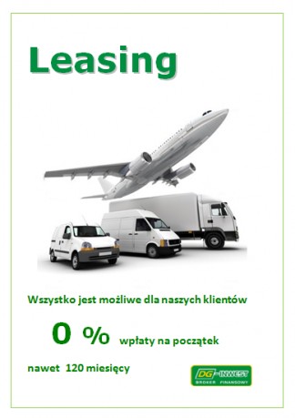 Nie pobieramy prowizji od Klientów, wpłata początkowa już od 1%, okres leasingu od 18 do, w szczególnych przypadkach, 180 m-cy!