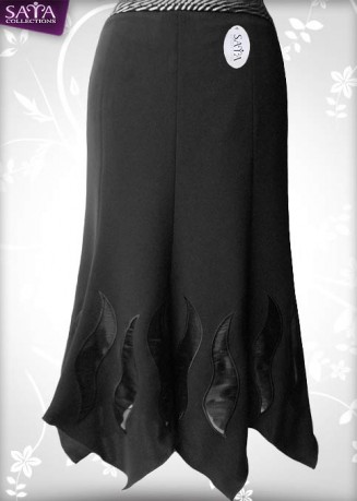 Najwyższa swoboda ruchów dla każdej Pani dzięki krojowi z 8 modelowanych klinów poszerzanych fantazyjnym cięciem w kształcie płatków kwiatka. U dołu spódnicy haft-witraż w kolorze tkaniny powodują że cały wzór nabiera niepowtarzalnego wygl