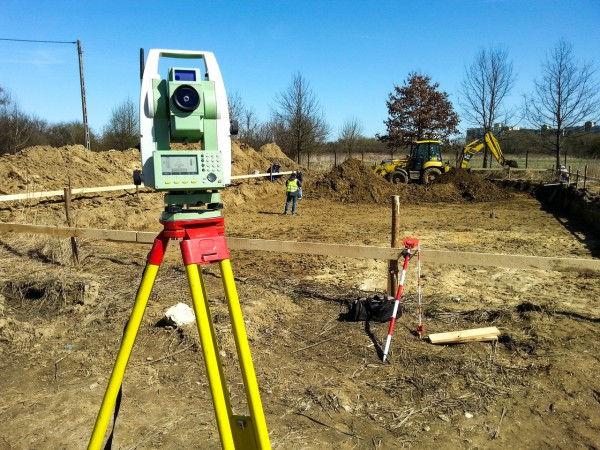 - Wytyczenie obrysu budynku, lub głównych osi konstrukcyjnych na ławach ciesielskich.