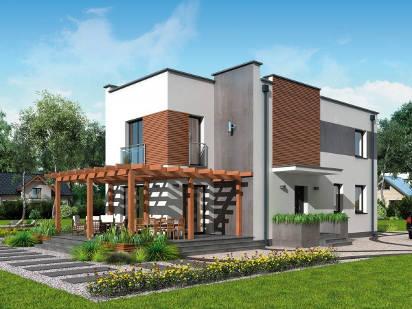 Korzyści: Przestronny dom na małej działce, szybie terminy realizacji projektów.