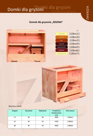 Domek Regina produkujemy w trzech wersjach :parterowa , pietrowa i dwupietrowa . Kaąda wersja w trzech wymiarach 57 , 67 , 80 cm .