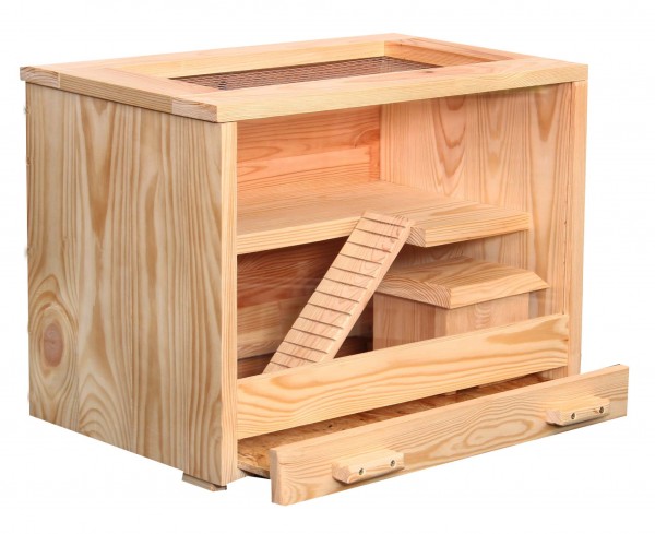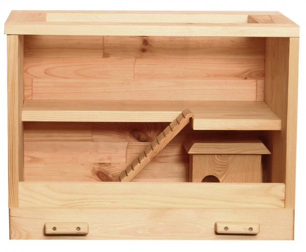 Domek wyposazony jest w półki , drabinki i sypialnię .