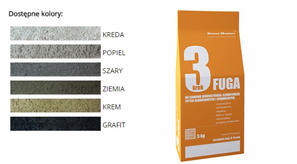 Fuga Przeznaczona do spoinowania kamieni dekoracyjnych, o szerokości fugi 4–15 mm. Do stosowana wewnątrz pomieszczeń.