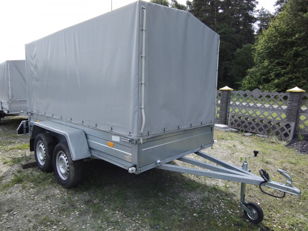 W dwóch wersjach: resor wzmacniany ŻUK lub oś/osie skrętne KNOTT. Rama przyczepy wykonana jest z profili zamkniętych, cynkowana ogniowo. Na podłodze sklejka antypoślizgowa wodoodporna, burty z wysoko tłocznej blachy MAGNELIS. Plandeka ze stelażem.