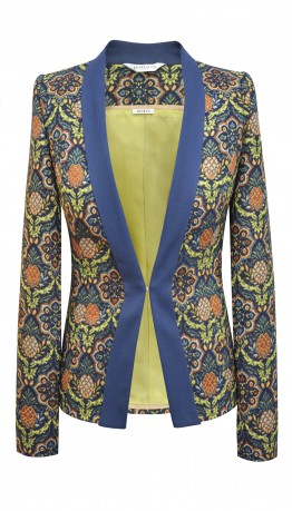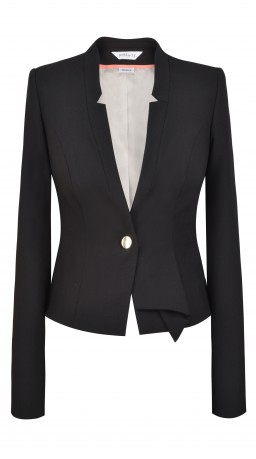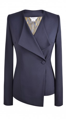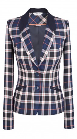 Eleganckie marynarki damskie o unikatowym krojach i wzorach, z charakterystycznymi, kontrarstowymi elementami.