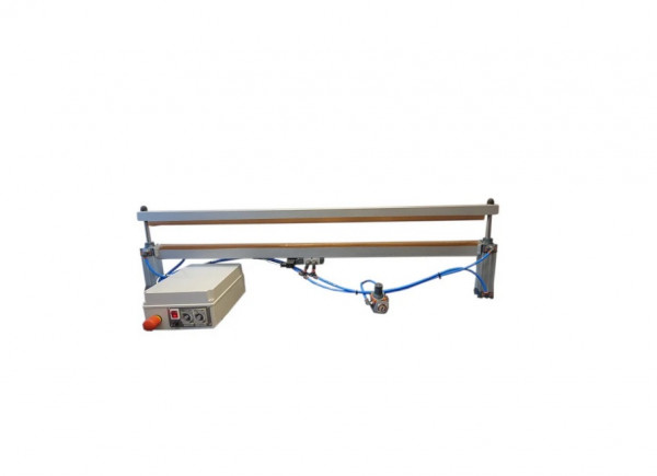Impulsowe, pneumatyczne belki zgrzewająco-prasujące o szerokości zgrzewu 20mm. Zgrzewarka prasuje wełnę na podkładzie z asfaltu. Zgrzewarka posiada skrzynkę i włącznik procesu zgrzewania na kablu w celu podłączenia maszyny do linii produkcyjnej.
