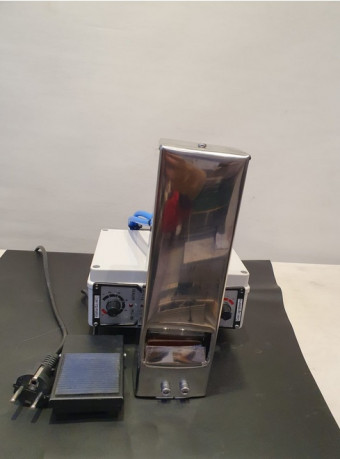 Prosta, mała, impulsowa, pneumatyczna zgrzewarka na stół do wgrzewania o-ringów.